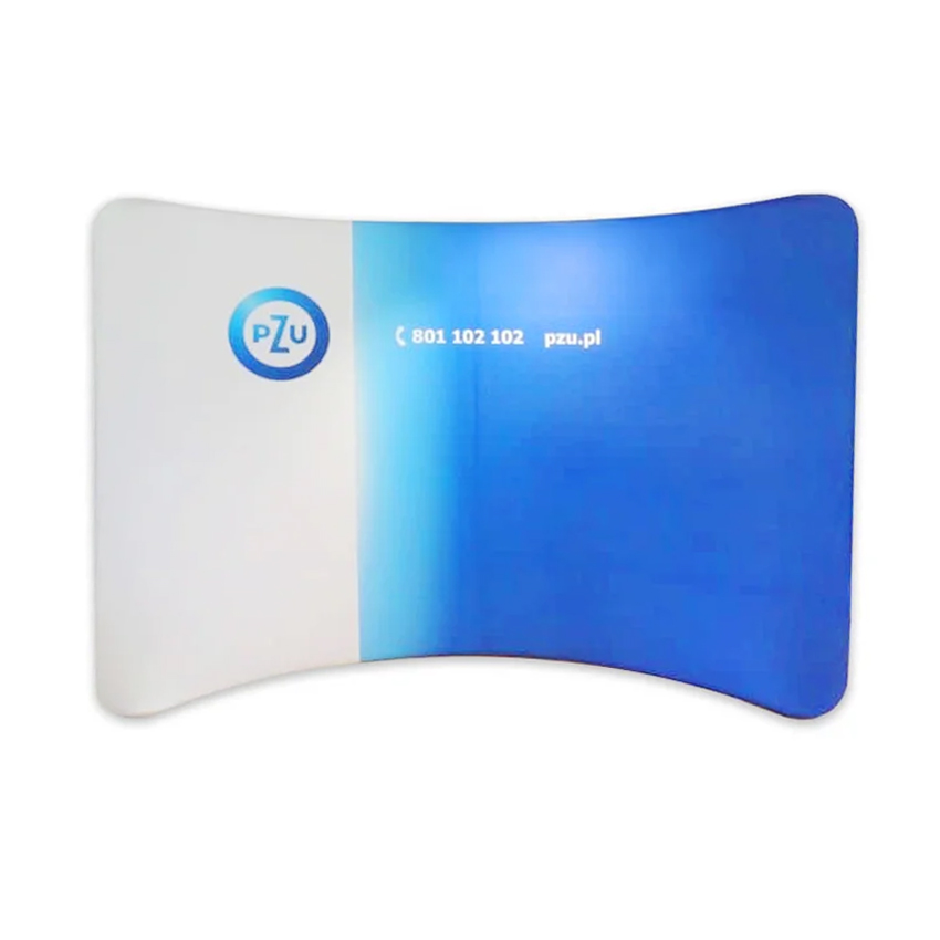 Przedstawiamy reklamową ściankę tekstylną łukową. Jest to specjalna rama wykonana z rur aluminiowych o średnicy zewnętrznej 32 mm, składana bez użycia narzędzi. Aby rozłożyć ściankę wystawienniczą łukową, na stelaż naciąga się wydruk wykonany na elastycznej tkaninie poliestrowej w formie „pokrowca” zapinanego na zamek błyskawiczny. Po złożeniu ścianka tekstylna łukowa łącznie z grafiką mieści się w jednej torbie transportowej wielkości podręcznego bagażu, dzięki czemu można ją bez problemu zabrać wszędzie ze sobą.