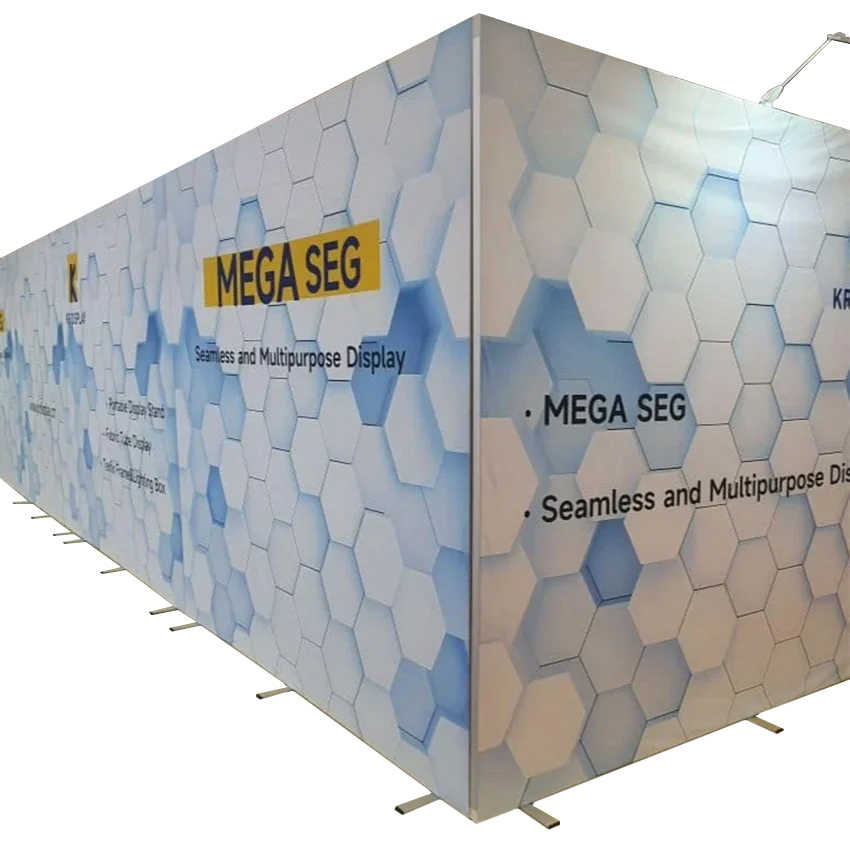 Ultralekki, łatwy w montażu i transporcie modułowy system budowy ścian reklamowych z jedno- lub dwustronną grafiką tekstylną. Składa się z beznarzędziowo składanych modułów – ram aluminiowych wielkości 100 x 200 cm ( opcjonalnie podwyższanych do 250 cm ) które można eksponować pojedynczo, lub łączyć ze sobą w większe struktury za pomocą plastikowych łączników. System umożliwia instalację jednej, dużej grafiki obejmującej wiele modułów, bez konieczności dzielenia jej na pojedyncze moduły. Grafika jest drukowana na elastycznej tkaninie obszytej taśmą silikonową (ang. Silicone Edge Graphic – SEG ), jej instalacja jest banalnie prosta. Każdy moduł jest spakowany w niewielką torbę transportową, więc całość może być przewożona nawet w samochodzie osobowym. Grafikę można czyścić, wymienić na nową lub używać paru grafik wymiennie. W ofercie posiadamy ponadto oświetlenie LED dedykowane do tego systemu. Poniżej podajemy ceny netto: