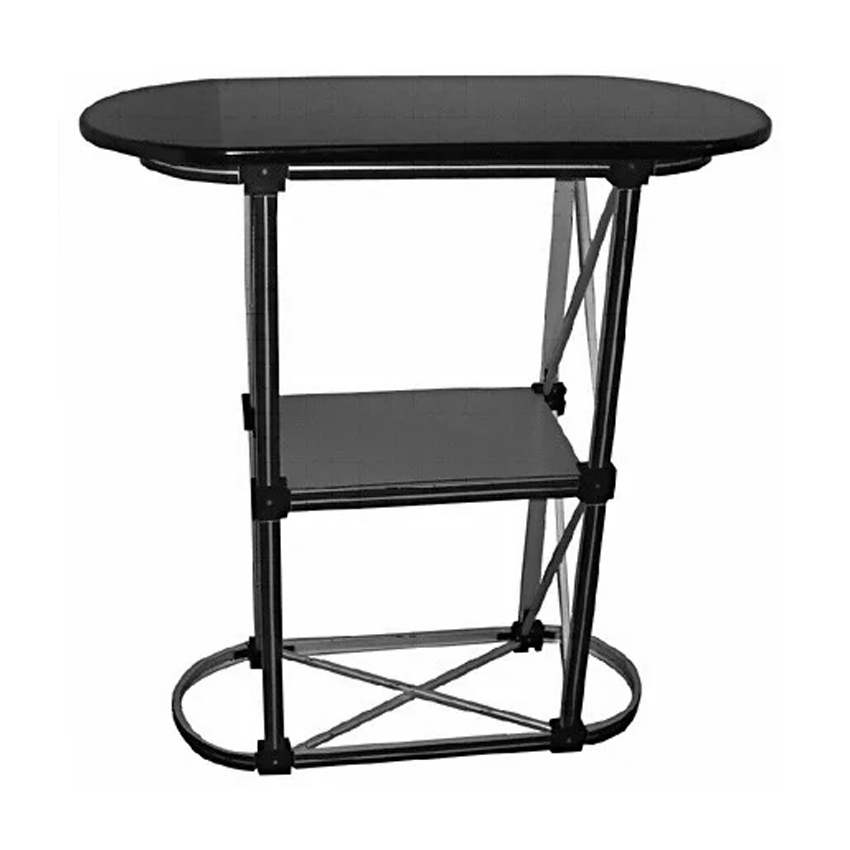 Lakierowany na czarny metallic blat o wymiarach 90 x 40 cm, wewnętrzna półeczka 35 x 38 cm.