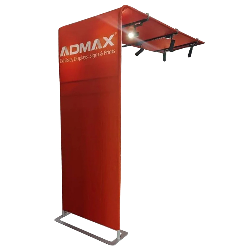 Stoisko reklamowe tekstylne to system gotowych stelaży z rur aluminiowych o średnicy 32 mm i wysokości 240 cm oraz akcesoriów do nich, składanych beznarzędziowo lub z pomocą załączonych kluczyków. Na stelaże zakłada się wydruki z grafiką tekstylną w postaci „pokrowców” zapinanych na zamek błyskawiczny, dzięki czemu uzyskujemy moduły ścian stoiska, zaplecza (na schowanie wieszaka z ubraniem, zapasu ulotek, katalogów itp.), ściankę z uchwytem na monitor i półkami lub efektowny łuk – bramę z uchwytem na monitor i opcjonalnie uchwytem na kierunkowe lampy LED, którymi można oświetlić wybrane części stoiska.