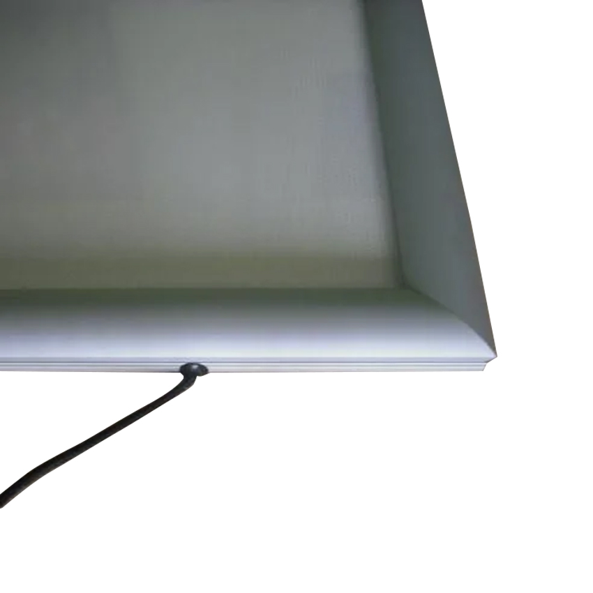 Oprócz ramek LED o wymiarach standardowych ( vide sąsiednie strony ) oferujemy wykonanie jednostronnych ramek LED na wymiar wydruku ( plakat ) zawierający się pomiędzy wielkościami W50 x H70 cm a W116,5 x H196,5 cm. Wykonujemy je z zatrzaskowego profilu aluminiowego szerokości 32 mm i grubości 19 mm ( jak na zdjęciach ) , wysokiej jakości panelu akrylowego rozprowadzającego światło grubości 5 mm grawerowanego laserowo ( tzw. laser dotting – metoda pozwalająca uzyskać największą równomierność świecenia i największą trwałość panelu ) i pasków z diodami LED 2,8×3,5 mm mocowanych wzdłuż obu dłuższych krawędzi panelu. W skład produktu wchodzi zasilacz 12V o mocy odpowiednio dobranej do wielkości ramki. Cena ramki zależy od przedziału wielkości plakatu wg. poniższej tabeli :