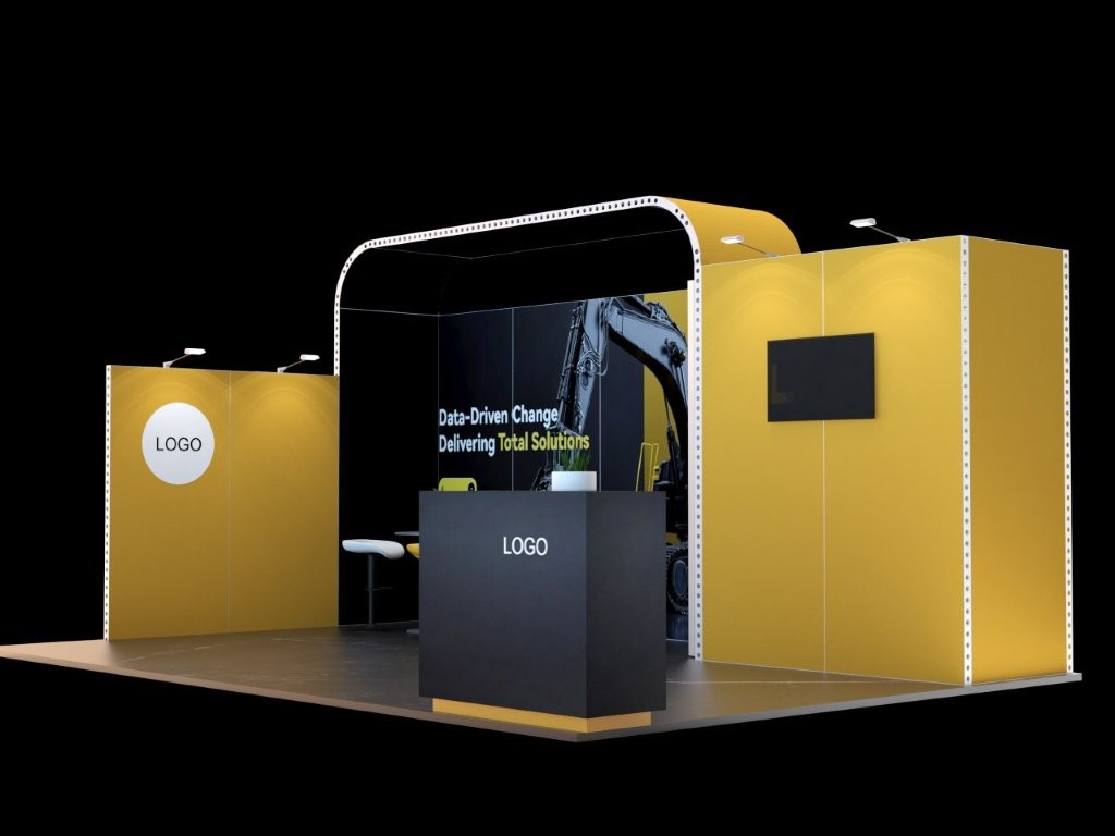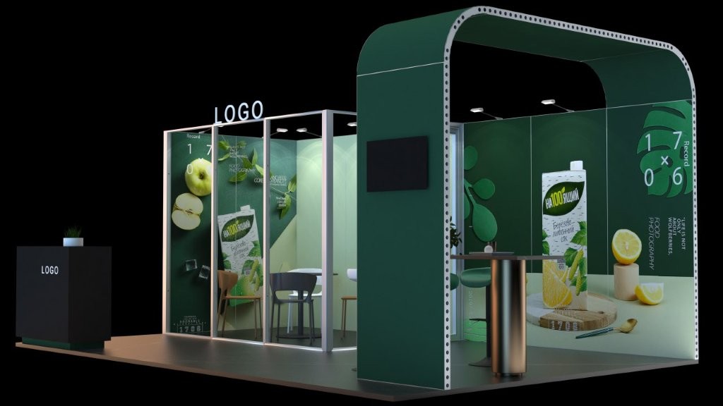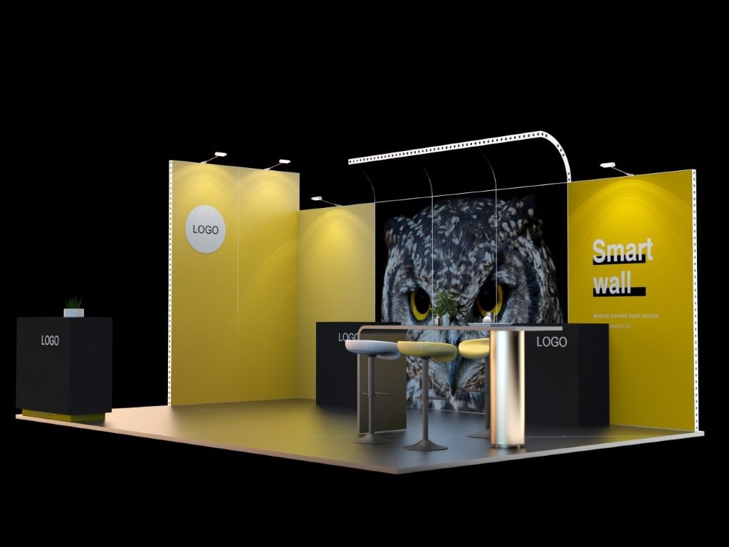 Szybkie w montażu stoisko, którego ściany budujemy z bardzo stabilnych modułów –  skręcanych ( i w razie potrzeby rozkręcanych ) ram aluminiowych wykonanych z profilu 62×40 mm. Mają one szerokość 96 cm, wysokość 125 lub 50 cm, dzięki czemu  możemy zbudować stoisko o wysokości 225 cm, 250 lub 300 cm. Moduły są w bardzo szybki sposób ze sobą łączone łatwo skręcanymi śrubami. Oferujemy również moduł zaplecza z drzwiami zamykanymi na klucz, lady, stojaki na broszury i inne elementy wyposażenia stoiska. Grafika może być wykonana na dwa sposoby :
