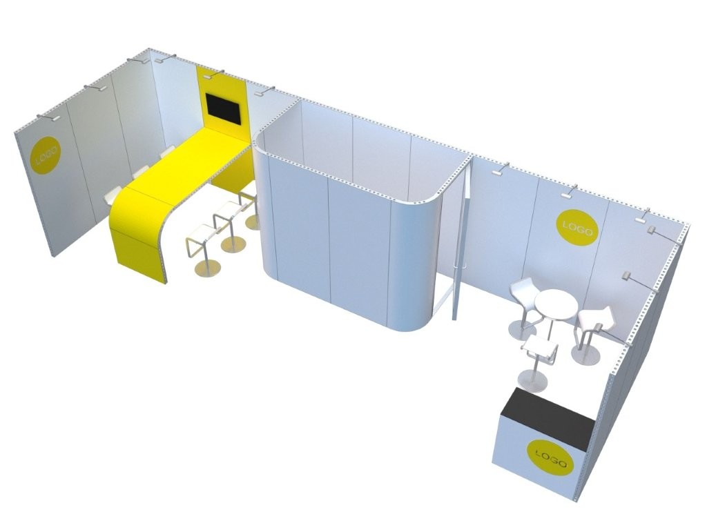 Stoisko można dowolnie modyfikować – powiększać lub pomniejszać zmieniając liczbę modułów, jak również łatwo transportować w elementach samochodem dostawczym. Przykładowa cena: stoisko w kształcie L, 300×300 cm o wysokości 250 cm, bez grafiki – 7 495 zł netto. Opcjonalnie oferujemy oświetlenie lampami LED, pojedynczymi lub łączonymi w szereg ( jeden szereg do 10 szt. lamp ma jedną wtyczkę ).